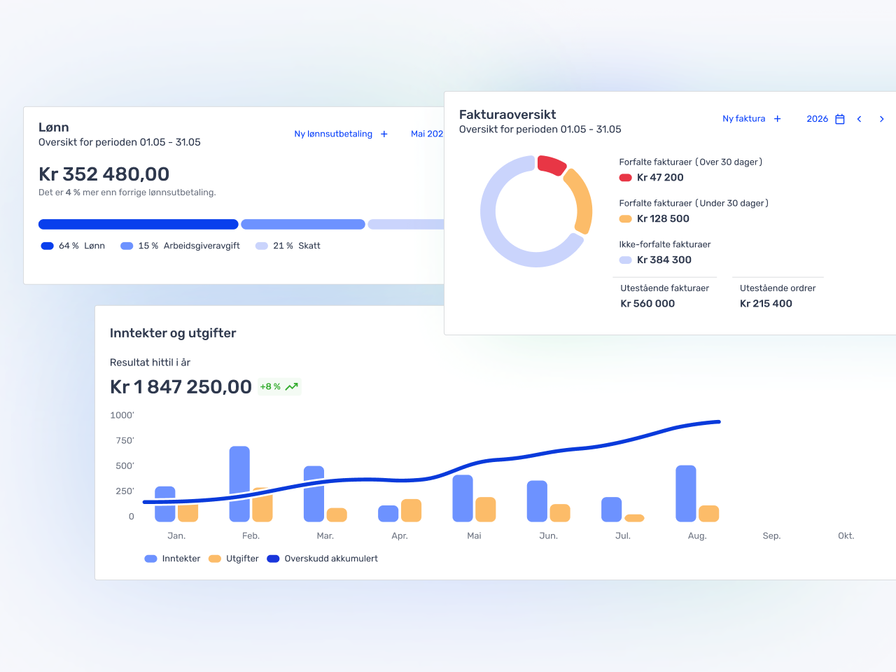 Få en bedre oversikt over kostnader og inntekter med Tripletex. Ved å samle alle de funksjonene du trenger i ett system sparer du mye tid og penger, og får bedre kontroll over lønnsomheten og økonomien.