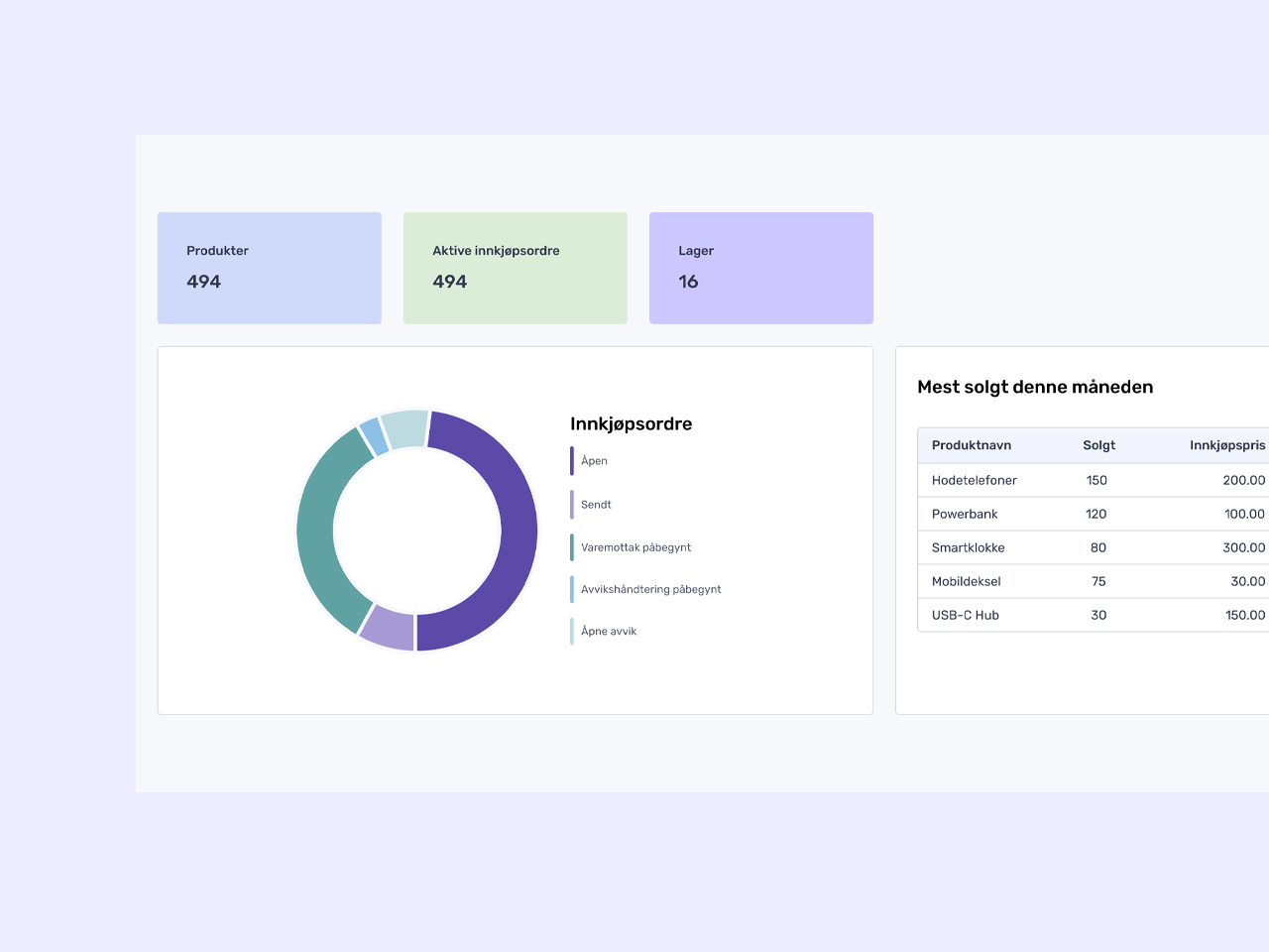 Denne løsningen passer for de aller fleste bedrifter som kjøper og selger varer, og som ønsker full kontroll på varebeholdningen. Vi har både en enkel løsning som støtter de grunnleggende behovene samt en mer avansert løsning koblet med Rackbeat for å støtte de mer avanserte behovene.