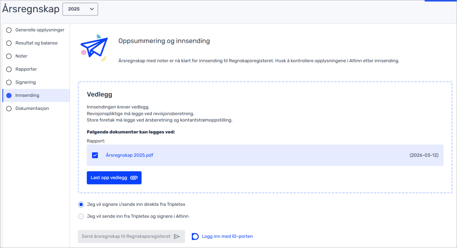 Små foretak uten revisor kan få raskere behandling av årsregnskapet ved å be om maskinell behandling av årsregnskapet. Det er ikke mulig å legge ved vedlegg på innsendingen om klienten ber om maskinell behandling.